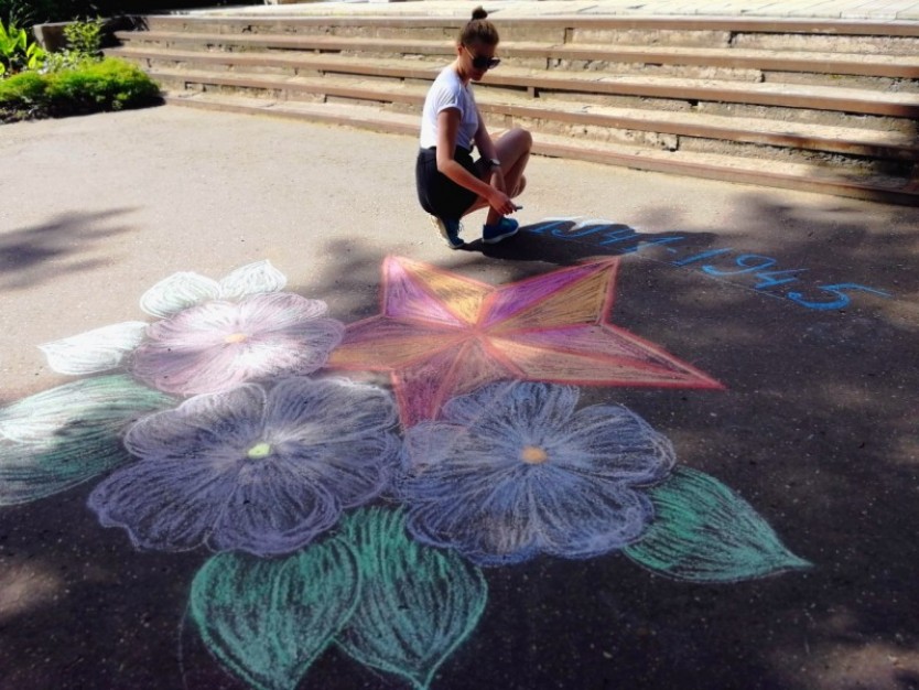 Предлагаем вам присоединиться! Условия очень просты: нарисовать на асфальте рисунок, связанный с Парадом Победителей, разместить фотографии на своих страницах в социальных сетях с хэштегами #Ярисуюмелом#24июня