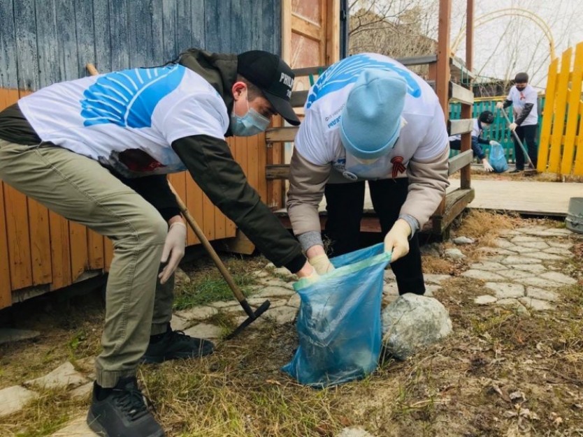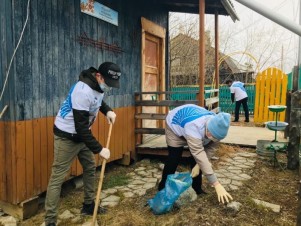 Волонтеры Победы с. Толька, в преддверии празднования 75-ой годовщины Победы, провели уборку во дворе Кулаковой Елены Ильиничны, труженика тыла Великой Отечественной войны.