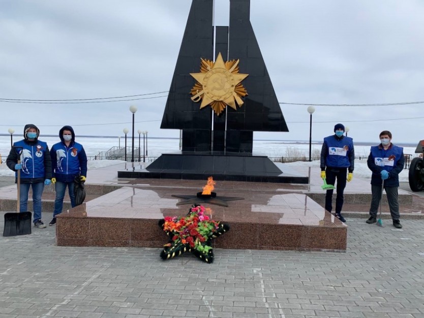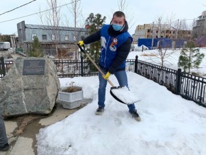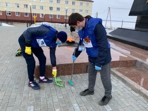В рамках подготовки к празднованию 75-летней годовщины Великой Победы, Волонтеры Победы Приуральского района в с.Аксарка приняли участие в акции «Чистый памятник».