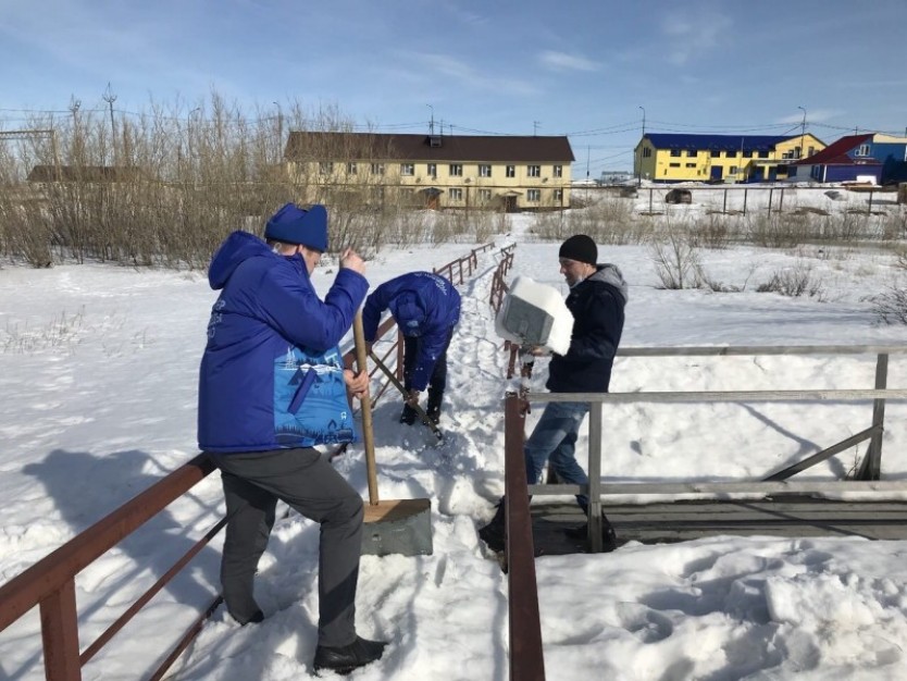 Поддерживаем всё в порядке. Специалисты центра «Забота» совместно с Волонтёрами Победы Тазовского района провели акцию по расчистке придомовой территория от снега труженику тыла, Сорокиной Галине Антоновне.