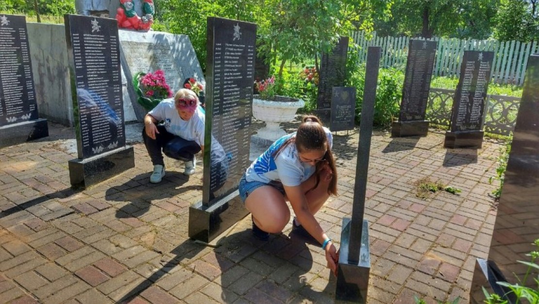 Волонтеры отчистили тротуарную плитку от проросшей травы, отмыли стелы и пропололи вазоны, в результате чего мемориал приобрел совершенно иной вид. К субботнику присоединились и местные жители. Вооружившись необходимым инвентарем, жители села пришли на помощь волонтерам, чтобы не словом, а делом почтить память о защитниках Родины.