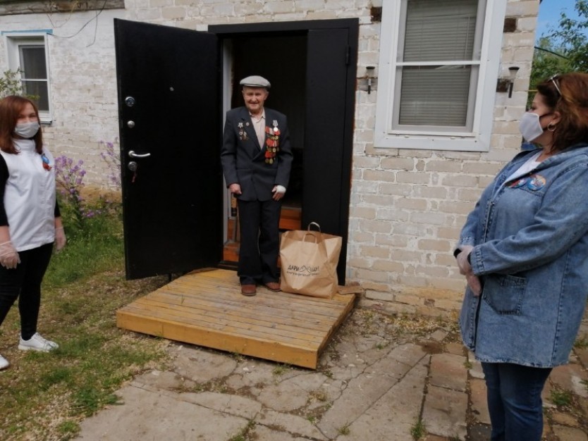 Ребята навестили 19 ветеранов ВОВ проживающих на территории Калачевского муниципального района, бесконтактно вручили им продуктовые наборы и письма ребят с благодарностью за мирное небо над головой.