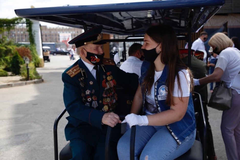 Волонтёры Победы Волгоградской области встретили героев и помогли ветеранам в комфорте посмотреть грандиозное мероприятие.