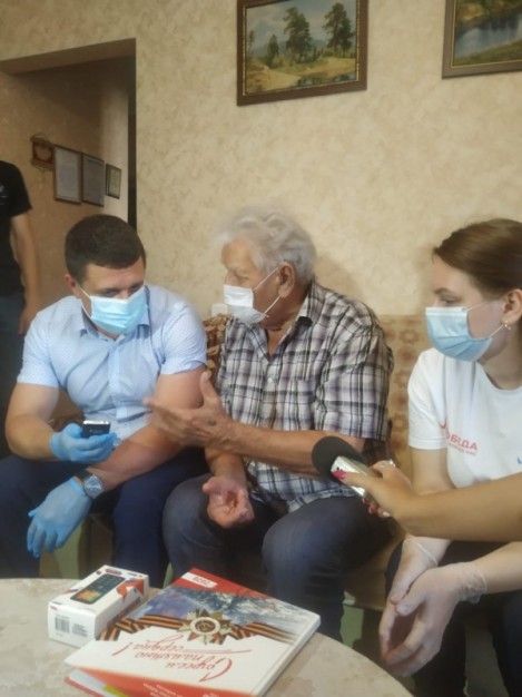 Волонтёр Победы Алина Пенигина, региональный координатор Волонтёров Победы Галина Берлизова, а также депутат Барнаульской Городской Думы Вячеслав Владимирович Переядов вручили бесплатный мобильный телефон ветерану города Барнаула - Петру Яковлевичу Бобкову.