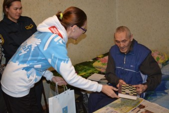 Волонтёры Победы, депутаты и сотрудники пожарной части и администрации села поздравили Фёдора Ивановича с Днём Защитника Отечества. Один из волонтёров сыграл с ветераном в шахматы, а инструктор противопожарной безопасности рассказала о мерах по недопущению пожара. Кроме того Федор Иванович пообщался с депутатами, которые взяли на контроль решение вопросов, волнующих пенсионера.
