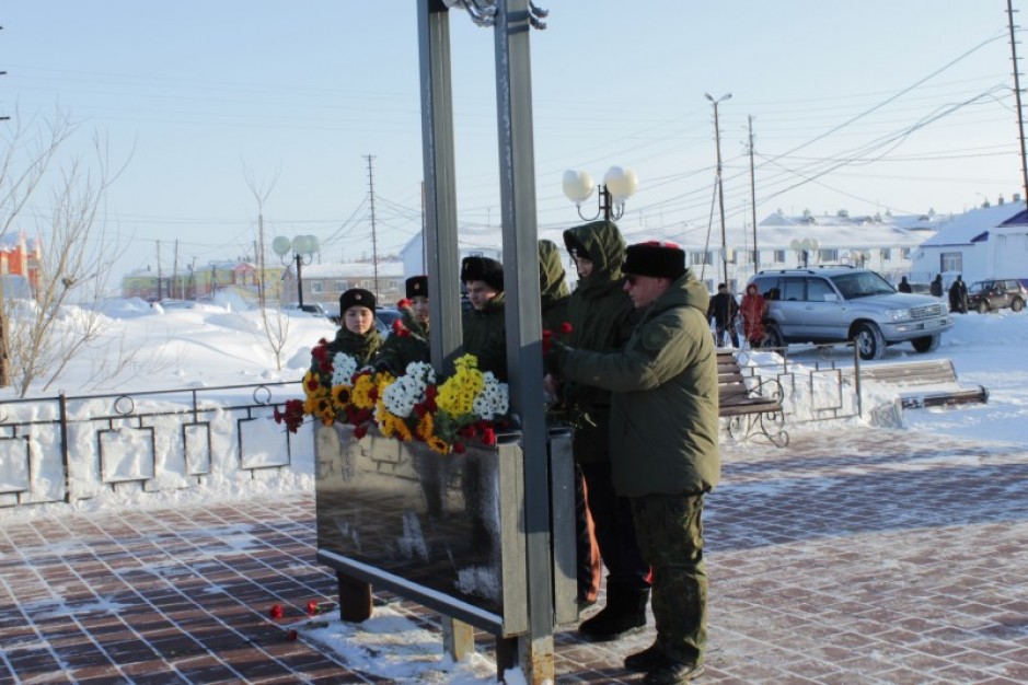 В эту памятную дату тазовчане (представители администрации района, органов местного самоуправления, общественных организаций, кадетские классы средней школы и школы-интерната и других учреждений) возложили цветы к скульптурной композиции «Журавли». К присутсвующим обратились председатель Районной Думы, Борисова Ольга Николаевна, военный комиссар района, Захаров Сергей Владимирович и председатель местной общественной организации ветеранов боевых действий, Павлючков Виталий Сергеевич. Давайте помнить об этих ребятах, которые не по наслышке знают, что такое честь и долг. Всем мира и чистого неба над головой