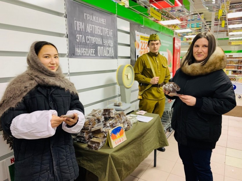 Активисты в 4-х торговых точках города и в школе №3 раздавали лабытнангцам символические 125-граммовые кусочки хлеба и памятные листовки, рассказывали про ценность ломтика хлеба для жителей блокадного Ленинграда, о подвиге советских людей. 27 января 1944 года Ленинград отпраздновал Победу. Победу тех, кто сражался с врагом, чтобы отстоять родной город, кто пережил все тяготы жесточайшей блокады, кто жил и боролся, несмотря на холод и голод, бомбёжки и артобстрелы. Муниципальное отделение всероссийского общественного движения "Волонтёры Победы" выражает огромную благодарность предпринимателям, оказавшим содействие и помощь в проведении в Лабытнанги Всероссийской акции "Блокадный хлеб": Пекарне ИП Абрамян С.Р. за 500 порций "блокадного хлеба", ваш вклад в проведение акции неоценим Пекарне БУЛКИ И ДЕЛИКАТЕСЫ за предоставление 125-граммовых кусочков хлеба для проведения акции в школе №3; ТЦ "Славянский", магазинe "Ширин", минимаркету "Купец", кафе-кулинарии "ЛЕТО" за предоставление площадок для проведения акции.
