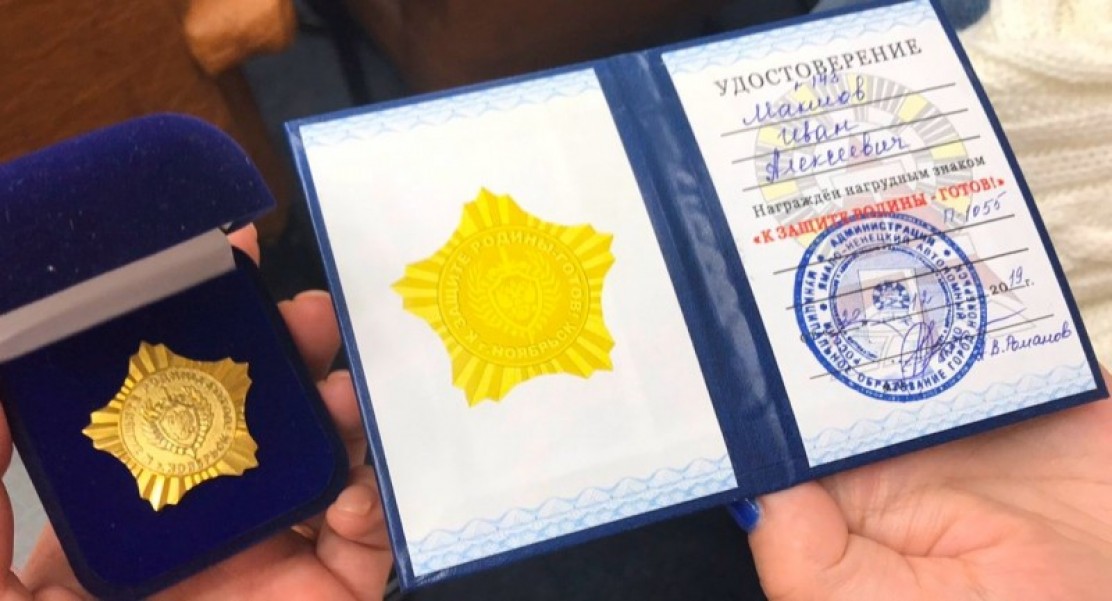 В жизни Волонтёров Победы Ноябрьска произошло много важных, интересных, почётных и человеческих событий! Но одно было особенно приятным! В Администрации города Ноябрьска прошло торжественное награждение по итогам реализации Государственной молодёжной политики в Муниципальном образовании в 2019 году. Волонтёру Победы и бойцу поискового отряда «Северный корпус» Макшову Ивану вручён нагрудный знак «К защите Родины готов!».Знаком награждаются молодые люди в возрасте от 14 до 18 лет и поощряются за достижения, успехи в деятельности патриотических объединений.