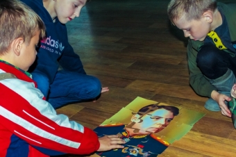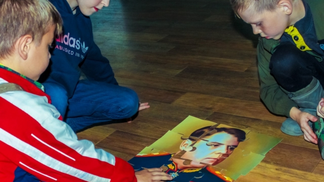 Собирали большой "пазл" портрет - маршала Александра Михайловича Василевского.