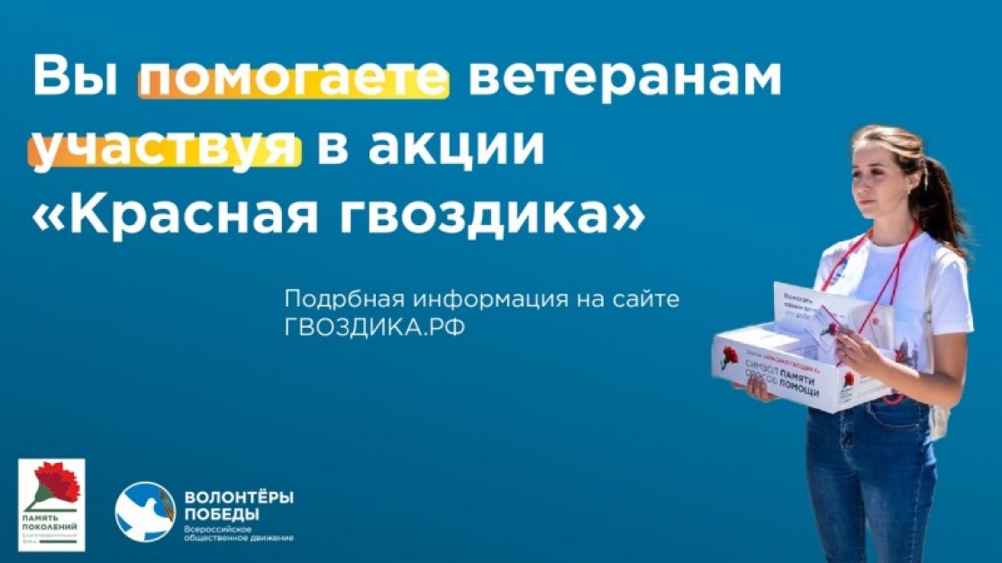 Всероссийская ежегодная благотворительная акция «Красная гвоздика» набирает обороты, ведь на улицы городов, наконец, могут выйти Волонтеры Победы, чтобы распространить памятные значки для сбора средств на организацию высокотехнологичной медицинской помощи ветеранам нашей страны.