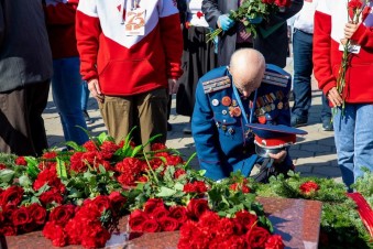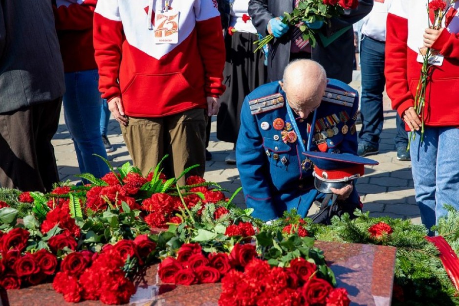 После Парада активисты отправились на Площадь Славы, чтобы принять участие в возложении цветов в память о погибших в годы Второй мировой войны. Также добровольцы сопроводили ветеранов на церемонию, где Губернатор Сахалинской области Валерий Лимаренко лично вручил героям медали «75 лет Победы в Великой Отечественной войне».