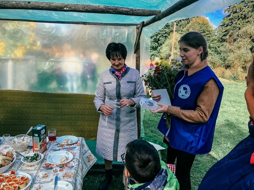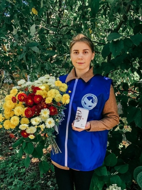 Активисты навестили Пелагею Сергеевну, чтобы поздравить ее с юбилеем и подарить ей мобильный телефон в рамках Всероссийского благотворительного проекта «Мобильные бригады помощи».