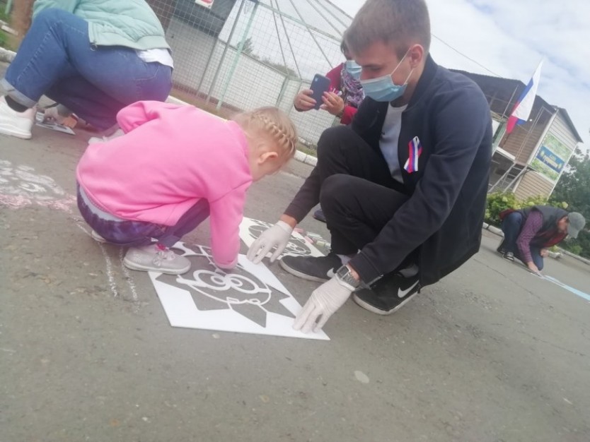 Для самых маленьких (и не только) была организована площадка, где можно рисовать мелками мультяшных героев