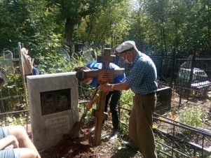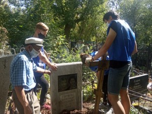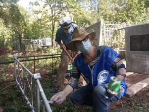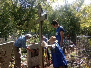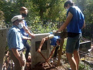 Волонтеры Победы собрали необходимый инвентарь: лопаты и грабли, кисточки и краску, и вместе с Михаилом Геннадьевичем пришли на кладбище. Добровольцы убрали листву, траву, покрасили оградку.