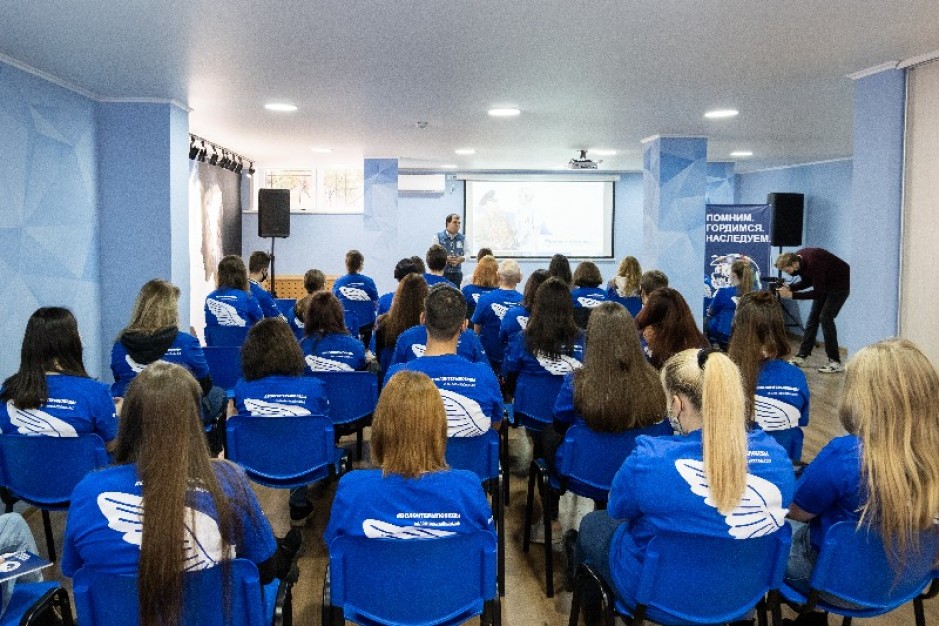 Для волонтеров была подготовлена специальная тренинговая программа подготовки к сопровождению Парада Памяти, интерактивной выставки и других ключевых событий, приуроченных к памятных датам.