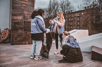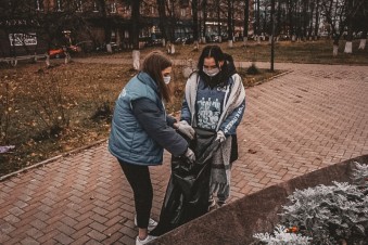 Добровольцы очистили территорию у памятника, собрали листву и привели памятник в порядок.