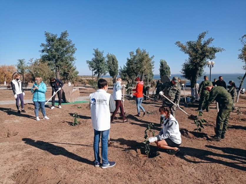 Также добровольцы приняли участие в высадке 47 саженцев катальп в память о погибших детях в рамках Международной акции "Сад Памяти".