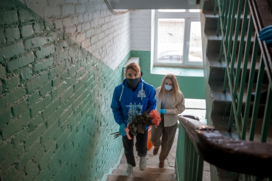 Совместно с Орехово-Зуевскими добровольцами руководитель #ВолонтерыПобедыМО Александр Печенегин и депутат Московской областной Думы Линара Самединова навестили Алёшину Александру Семёновну - участницу Великой Отечественной войны.