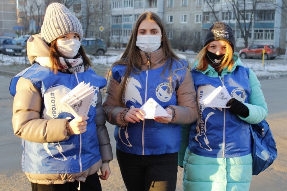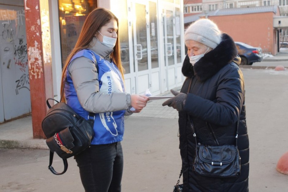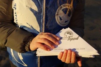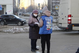 Волонтеры выдали жителям нашего города листовки в виде писем-треуголок, в которых содержится информация о Героях и о совершенных ими подвигах
