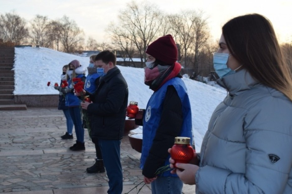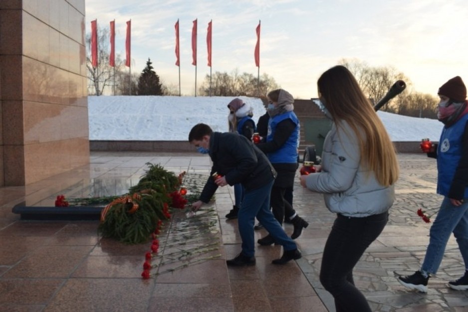 Волонтеры зажгли свечи и возложили цветы к могиле Неизвестного солдата. Память павших безвестных Героев почтили минутой молчания.