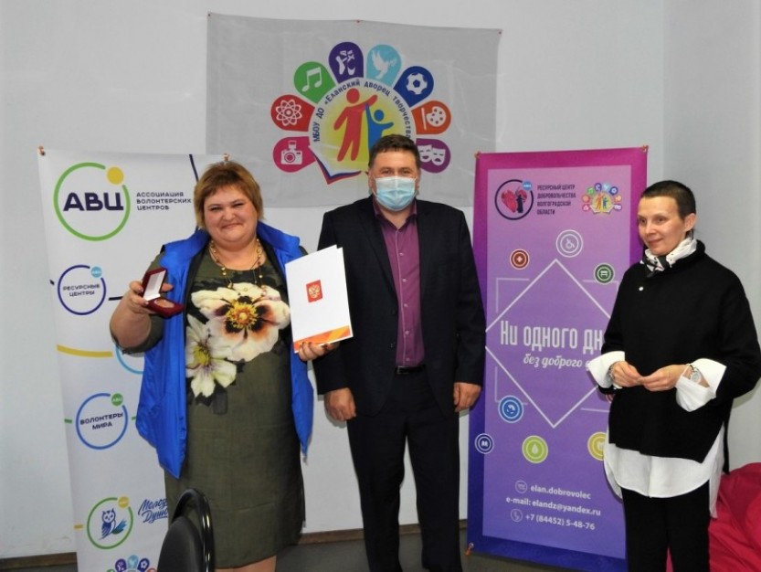 На церемонии руководитель местного отделения ВОД "Волонтеры Победы" в Еланском районе Елена Лунина была награждена медалью и грамотой от президента Российской Федерации Владимира Владимировича Путина «За бескорыстный вклад в организацию Общероссийской акции взаимопомощи «#МЫВМЕСТЕ».