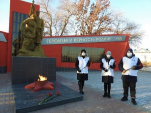 Волонтёры Победы г.Камышина возложили цветы к бюстам на Аллее Героев, а также почтили память защитников Родины на Братском захоронении воинов, умерших от ран в госпиталях на территории Камышина в 1941-1943 годах.