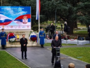 «Это особенно важно сегодня, когда в ряде европейских стран наращиваются нечистоплотные усилия, направленные на очернение воинов-победителей и одновременно на оправдание кровавых преступлений нацистов и их приспешников-коллаборационистов. Мы с сербскими друзьями категорически не приемлем любые попытки переписать историю Второй мировой войны, подвергнуть ревизии ее общепризнанные международно-правовые итоги. Это мероприятие – яркое тому подтверждение».