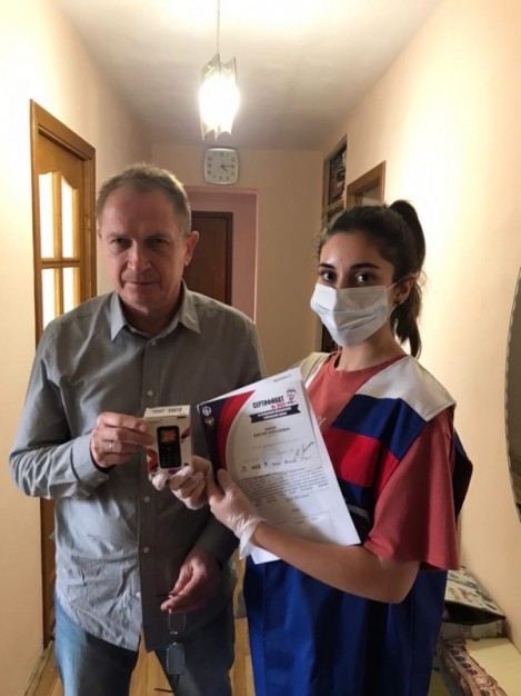 Также совместно с депутатом городской Думы Краснодара VII созыва Орешкиным Дмитрием Викторовичем телефон и сертификат на получение бесплатной мобильной связи был вручен участнику Великой Отечественной войны Чумакову Николаю Васильевичу.