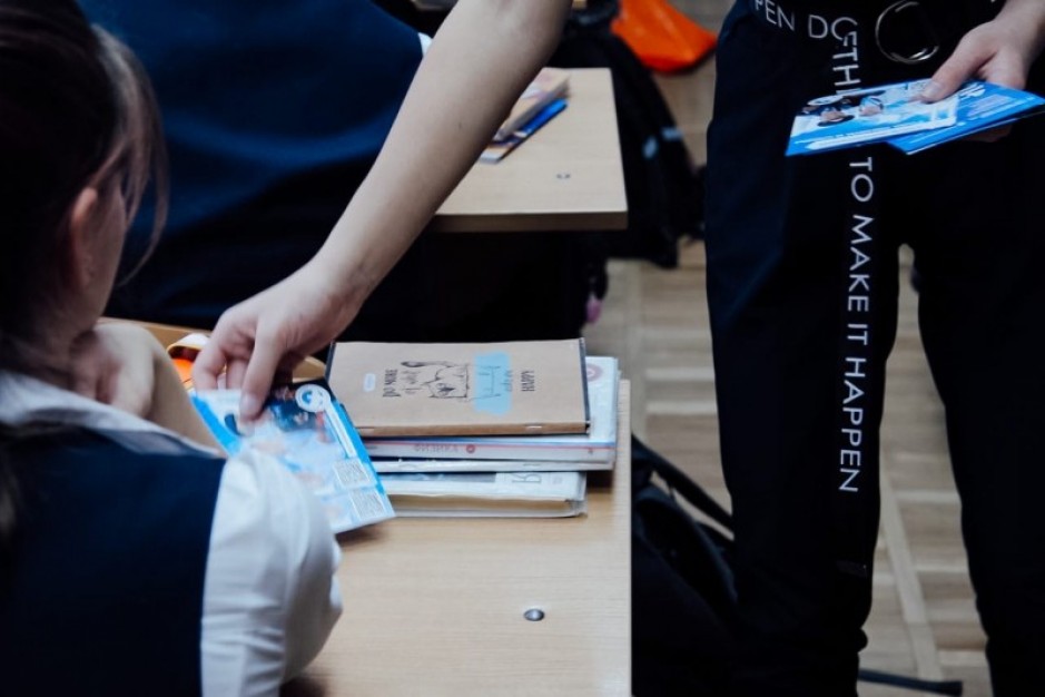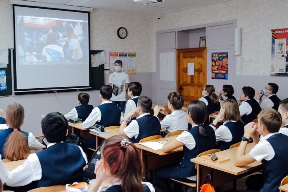 Капитан отряда Лера и заместитель капитана отряда Ясмина вместе с региональным координатором Школьных отрядов Чибисовым Дмитрием рассказали о цели и задачах движения, а также о различных направлениях, в которых новоиспеченные школьники могут себя реализовать!