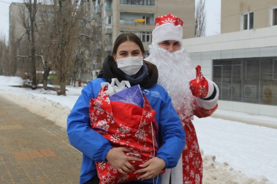 Волонтёры Победы по всей области в костюмах Деда Мороза и Снегурочки поздравляют с наступающим Новым годом и Рождеством ветеранов Великой Отечественной войны, Детей войны и тружеников тыла, желают им долгих лет жизни, здоровья и счастья. Также добровольцы вручают героям подарочные продуктовые наборы, подарки, открытки и сувениры, сделанные своими руками