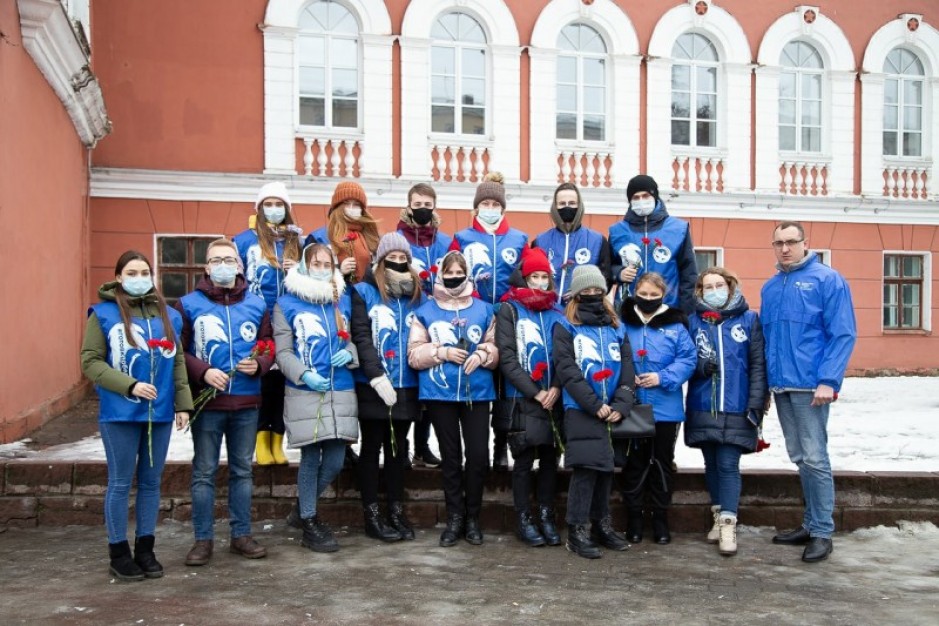 Активисты регионального отделения Всероссийского общественного движения «Волонтеры Победы» приняли участие в церемонии возложения цветов и почтили память солдат, сражавшихся за город.