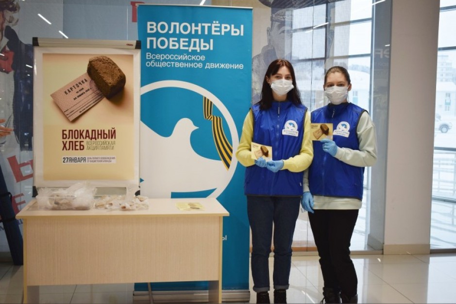 Блокада Ленинграда – одно из самых трагичных событий в истории страны. Осада города-миллионника длилась 872 дня: с 8 сентября 1941 года до 27 января 1944 года. Это было тяжелое время для всех жителей северной столицы. Самым сложным оказался период с декабря по февраль первой зимы – 1941-1942 годов. За три месяца умерло больше 250 тысяч человек. В это время бойцам на передовой линии обороны выдавали 500 граммов хлеба в день, рабочим горячих цехов – 375 граммов, остальным рабочим и инженерам – 250 граммов, служащим, иждивенцам и детям – всего 125 граммов хлеба. Другие продукты в этот период не выдавали. Отсюда и название акции «Блокадный хлеб», которая прошла по всей Югре. Более 12000 маленьких кусочков хлеба, «хлебных карточек» и муаровых лент раздали волонтеры победы жителям Югры во время акции.