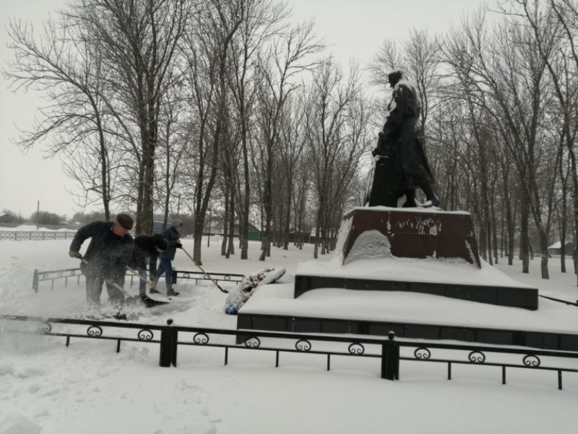 Добровольцы Новохопёрского района в рамках Всероссийской патриотической акции «Снежный десант» облагородили памятник погибшим в годы Великой Отечественной войны.