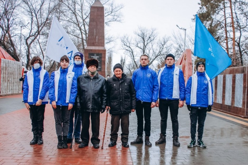 Вместе с ветеранами Великой Отечественной войны Владимиром Сергеевичем Павлушкиным и Пётром Ивановичем Глазиным активисты почтили минутой молчания героев, погибших на Сталинградской земле.