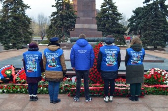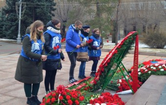 Волонтёры Победы Волгоградской области возложили цветы к Вечному огню на пл. Павших борцов в память о подвигах тех, кто ценой своей жизни освободил город-герой в годы Сталинградской битвы.