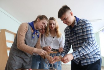 Во время мероприятия участники отвечали на вопросы и выполняли практические задания: сооружали носилки, находили координаты, строили катапульту и многое другое.