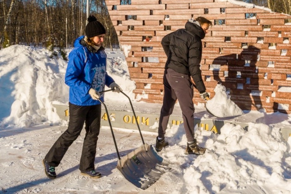 Добровольцы более чем в 20 городах Подмосковья очистили от снега памятные места.