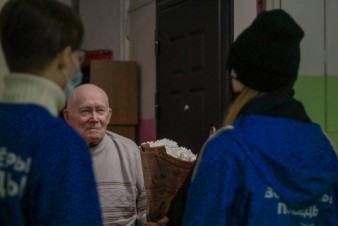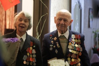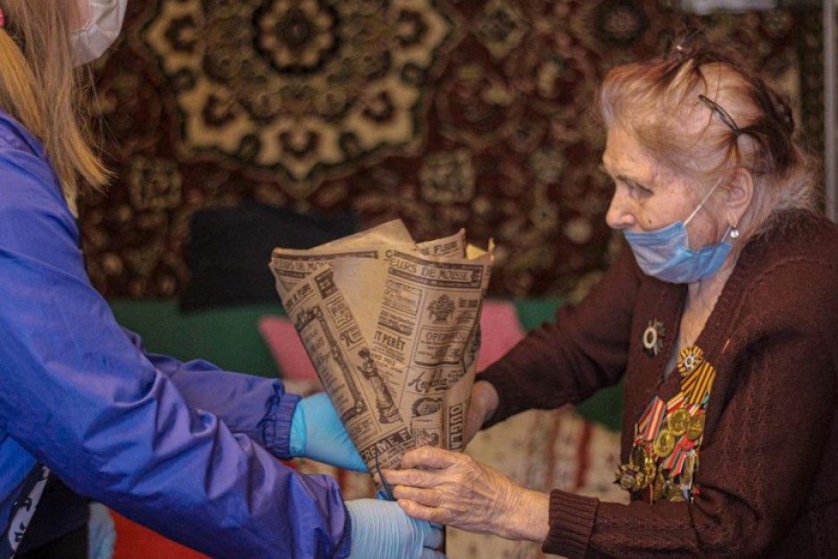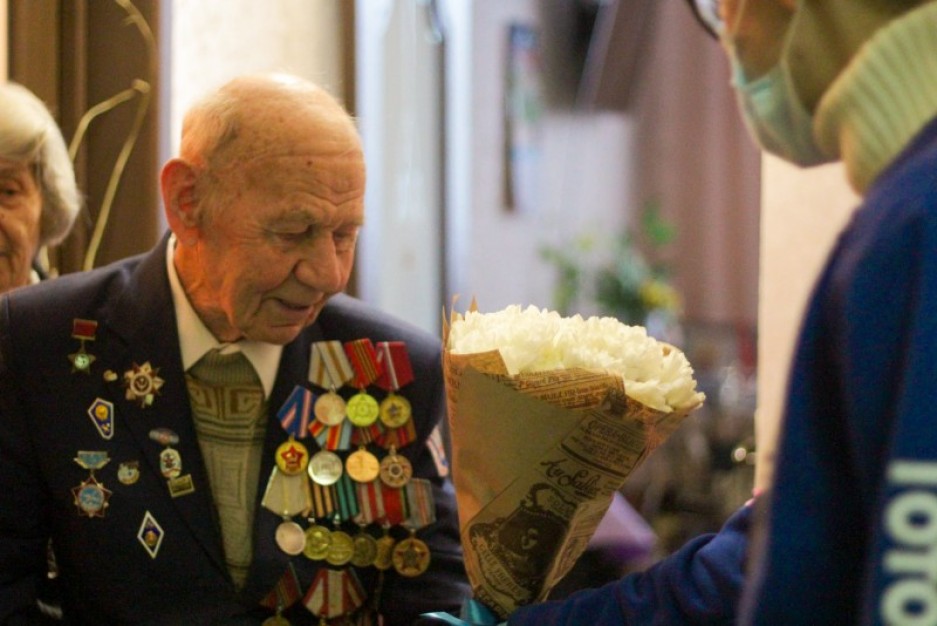 Добровольцы вручили ветеранам букеты цветов, пожелали крепкого здоровья и долгих лет жизни.