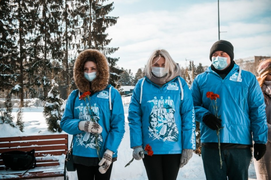 В Звёздном городке совместно с главой городского округа и руководителем Волонтёров Победы в Московской области добровольцы возложили цветы к Мемориалу Победы, на котором высечены имена жителей города, принимавших участие в Великой Отечественной войне.