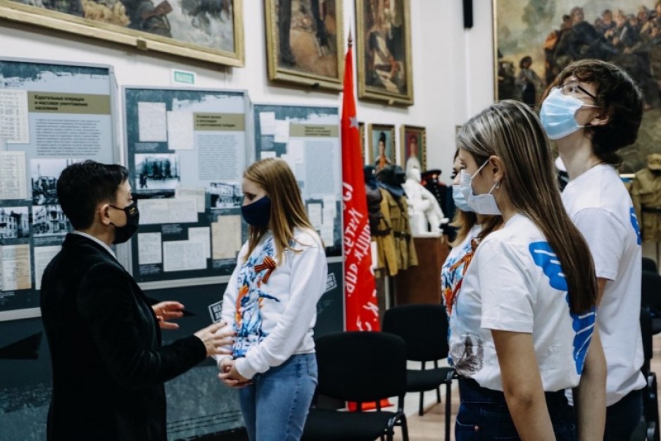 В Выставочном зале Боевой Славы собралась активная патриотически развитая молодежь края: воспитанники Почетного караула города Краснодара, Волонтеры Победы, юнармейцы, кадеты Кубанского казачьего кадетского корпуса имени атамана М.П. Бабыча, школьные поисковые отряды «Обелиск» и «Патриоты Кубани».