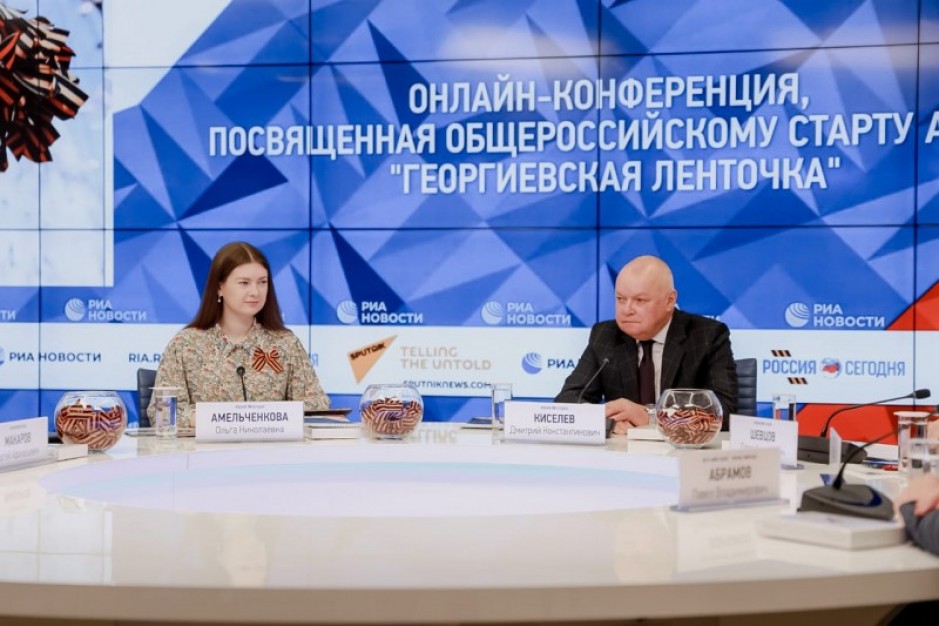 На пресс-конференции в МИА Россия сегодня генеральный директор медиагруппы «Россия сегодня» Дмитрий Киселев сообщил: «Сейчас, когда великую историю Победы советского народа в самой страшной войне пытаются переписать и извратить, как никогда важно еще раз напомнить миру о беспрецедентном героизме тех, кто избавил человечество от ужасов фашизма. Георгиевская ленточка – святой для россиян всех поколений символ, знак нашей памяти и уважения подвигу отцов и дедов».