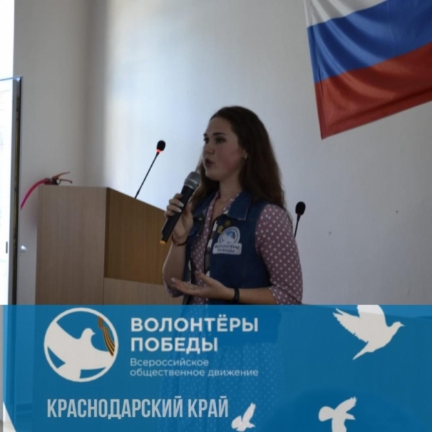 14 октября в Краснодарском технологическом колледже региональный руководитель ВОД «Волонтеры Победы» Краснодарского края Лоточникова Юлиана совместно с активистами движения провели презентацию движения для студентов 1 курса и волонтёрского отряда учебного заведения.