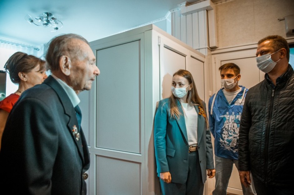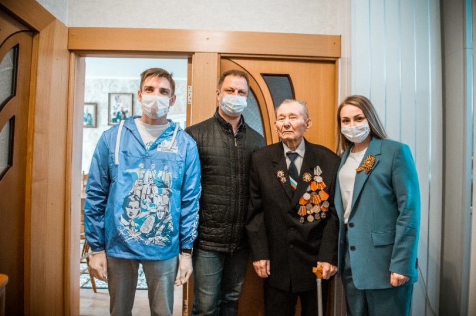 Руководитель Волонтёров Победы в Московской области Александр Печенегин, депутат Московской областной Думы Линара Самединова и глава г.о. Электрогорск Сергей Дорофеев в рамках акции «Помнить Каждого» поздравили с наступающим Днём Победы ветерана Великой Отечественной войны - Сергея Петровича Лобикова.