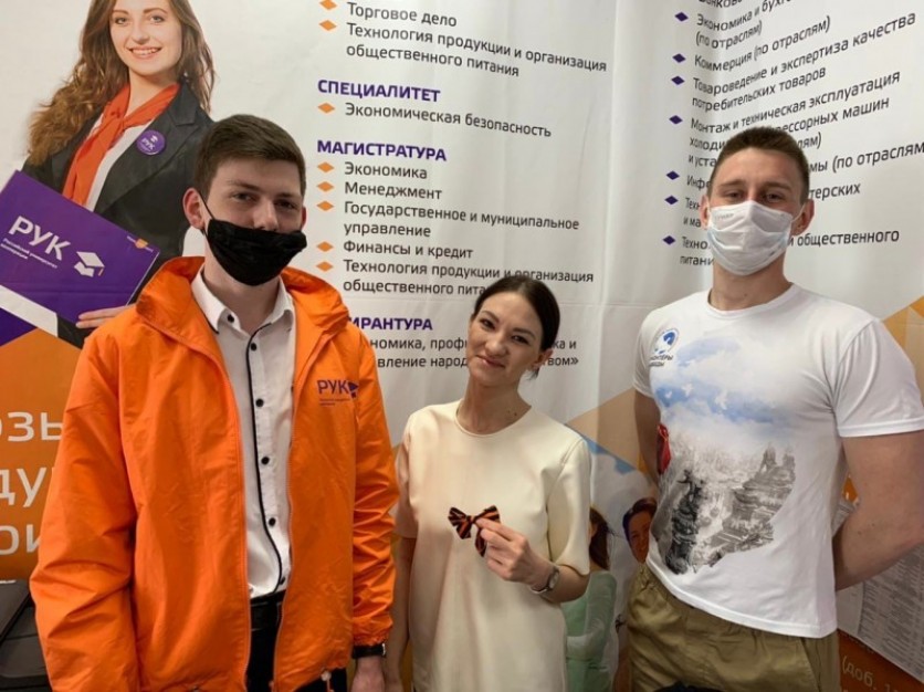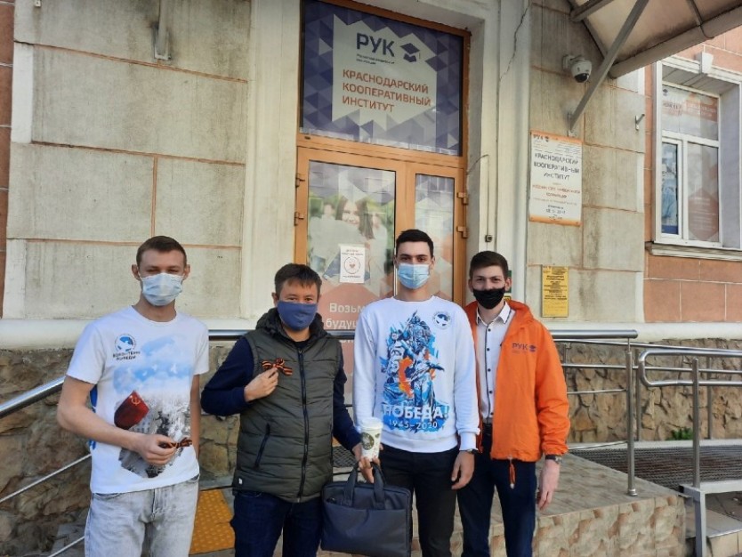 Волонтёры Победы Краснодаркого местного отделения и волонтёрский центр «РУКи добра» ККИ РУК «Краснодарский кооперативный институт» провели международную акцию «Георгиевская ленточка» в стенах учебного заведения и за её пределами.