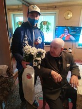 В преддверии праздника Великой Победы Волонтеры Победы Республики Карелия в рамках адресной помощи ветеранам и благотворительного проекта «Мобильные бригады помощи участникам и инвалидам Великой Отечественной войны» поздравляют ветеранов. Волонтеры поздравляют участников войны и вручают подарочные наборы с букетами хризантем. Вместе с подарками ветераны получают письма с теплыми словами героям от обучающихся школ и техникумов, которые были написаны в рамках участия в Международном проекте «Письмо Победы».
