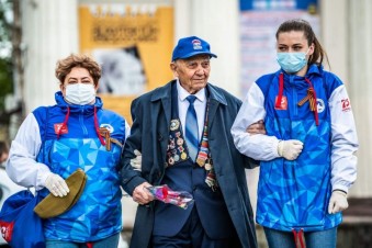 В этом году их было восемь человек. Волонтёры Победы с трепетом, почетом и уважением сопровождали главных гостей парада от дома до места проведения.