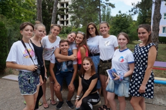 Добровольцы Республики Крым посетили евпаторийский лагерь «Алые Паруса», в котором сейчас отдыхают лидеры Российского движения школьников со всего Крыма.