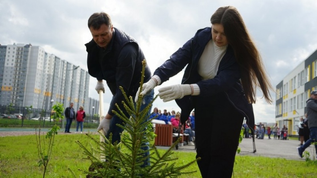 Эта высадка стала одной из центральных в Ленинградской области. На территории Новогореловской общеобразовательной школы в Ломоносовском районе еще не слышны детские голоса, ведь откроется она только в будущем учебном году, а вот аллея Памяти сегодня заняла свое почетное место. В рамках акции выпускники соседней школы, родители с будущими первоклассниками высадили 50 саженцев хвойных деревьев.
