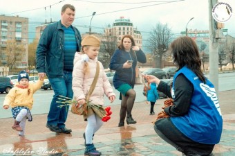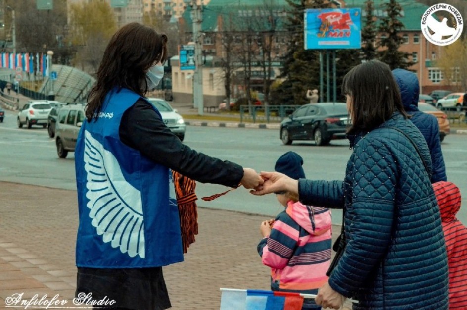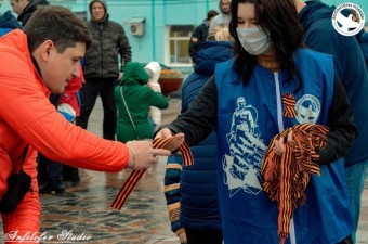 Первая точка была организована у Мемориала Героям фронта и тыла сразу после завершения торжественных мероприятий. На площади Революции волонтеры продолжили акцию.