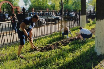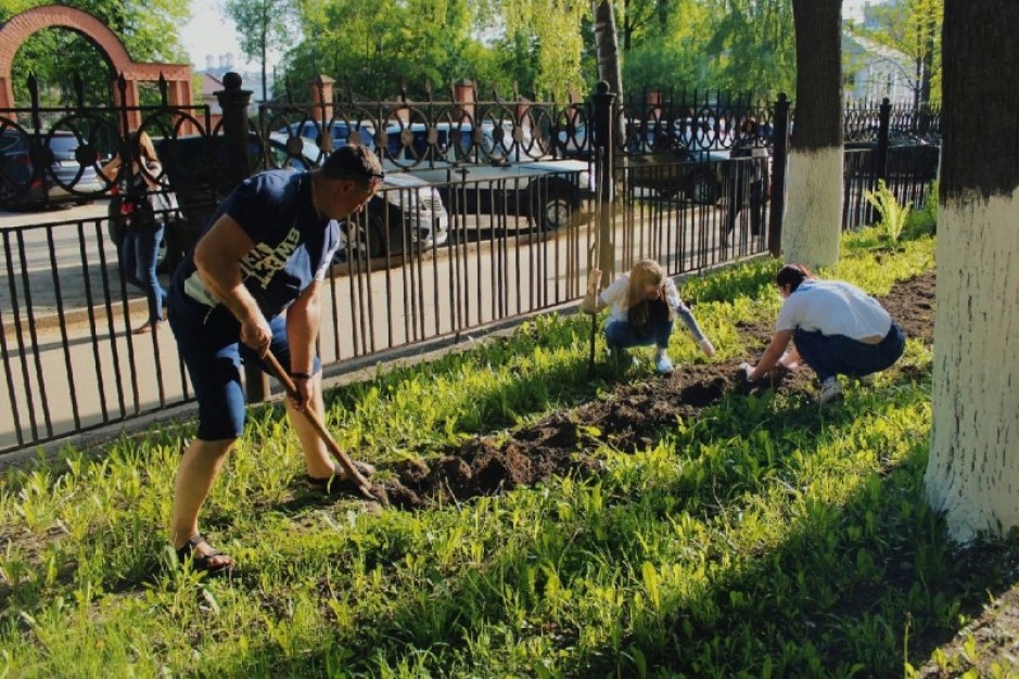 Волонтеры Победы привели в порядок клумбы и высадили цветы у областного госпиталя для ветеранов войн.